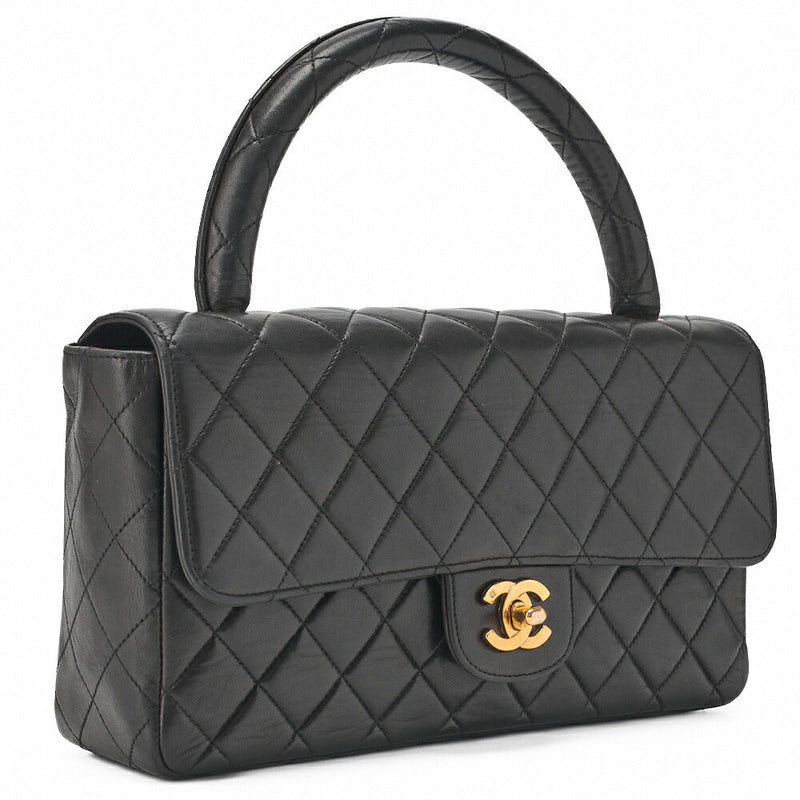 Gebrauchte Handtasche Matelassé Coco Griff Lammleder Schwarz Goldfarbene Hardware Gebraucht