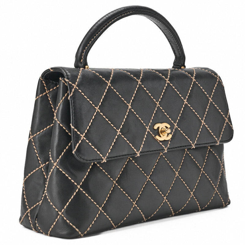 Gebrauchte Tragetasche, Coco Mark Wild Stitch Turn Lock, Kalbsleder, Schwarz, goldfarbene Metallteile, gebraucht