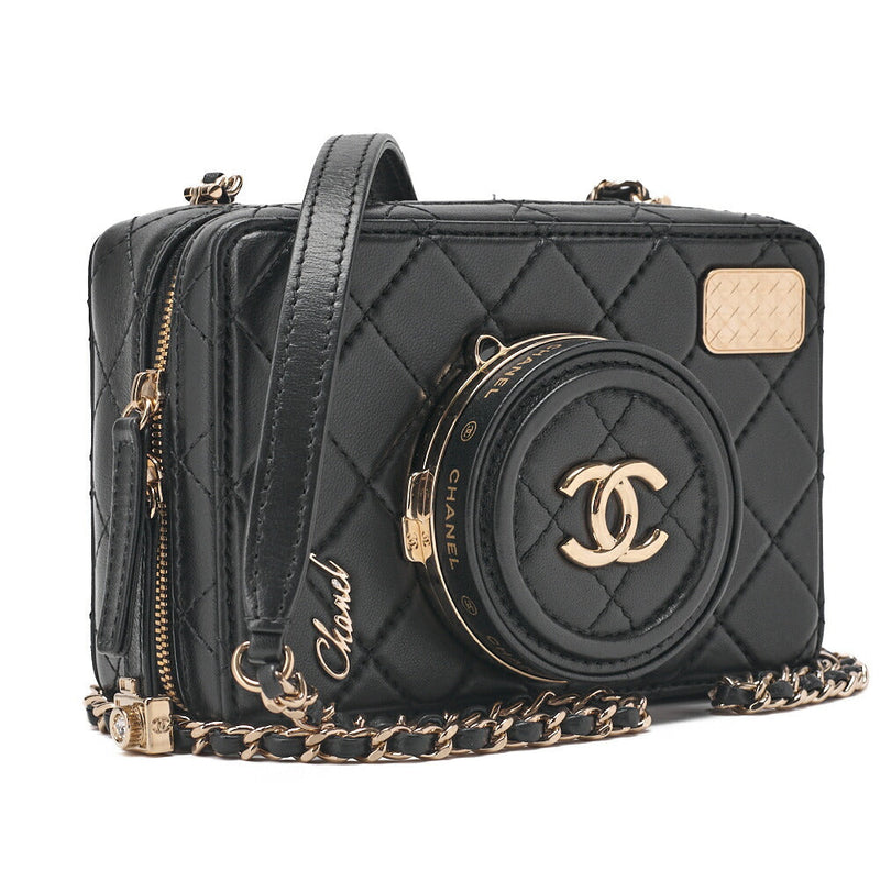Pre-Owned Kette Schultertasche Matelasse Kameratasche Lammleder Schwarz Goldfarbene Hardware Pre-Owned