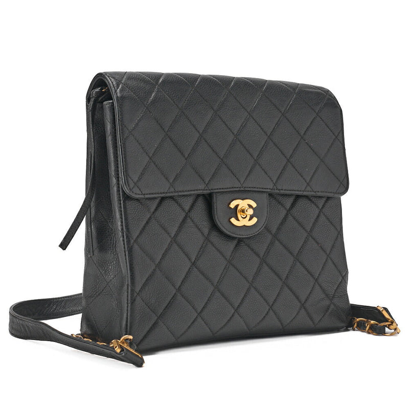 Pre-Owned Chain Shoulder Bag Big Matelassé Lammleder Schwarz Goldfarbene Hardware Pre-Owned