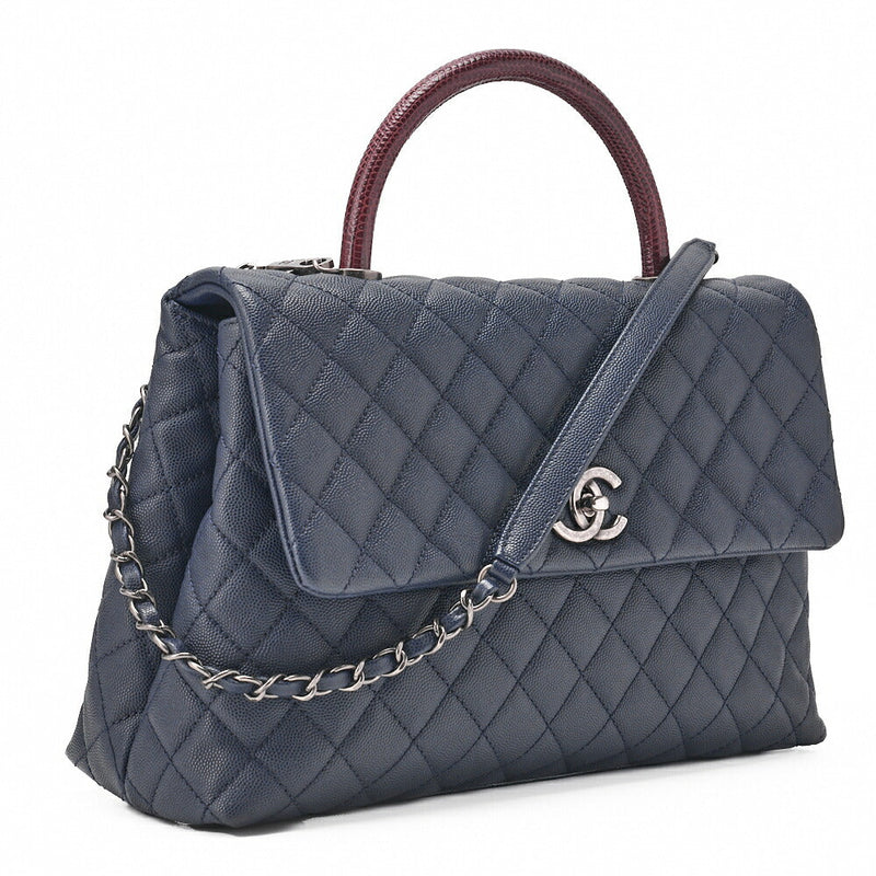 Pre-Owned Shoulder Bag Matelassé Coco Handle 2-Way Handbag Caviar Skin Lizard Navy x Bordeaux Silver-Tone Hardware, Pre-Owned