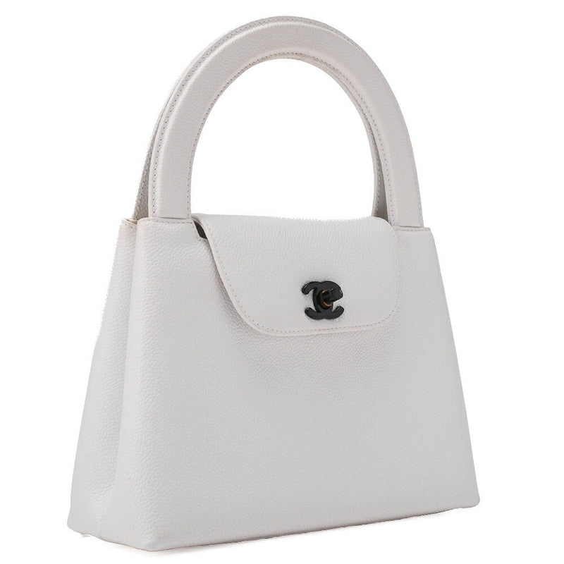 Gebrauchte Handtasche Mini Kelly Type Caviar Skin Weiß Goldfarbene Hardware Gebraucht