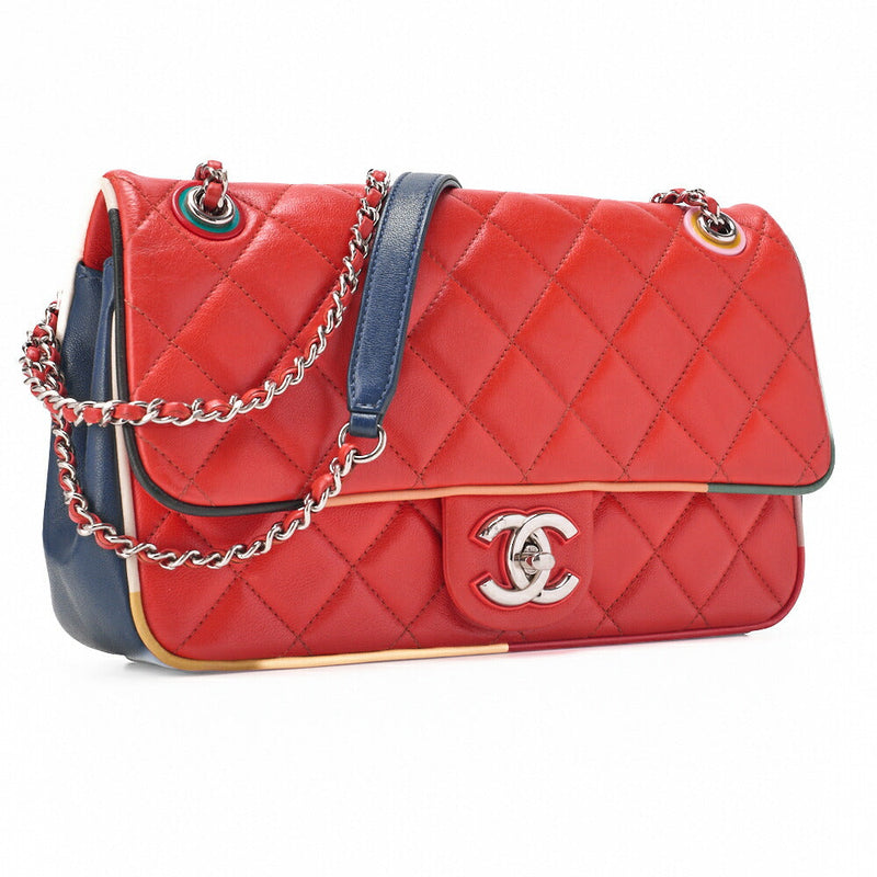 Pre-Owned Schultertasche Matelassé Denim Blau Einzelklappe Drehverschluss Silberfarbene Hardware Pre-Owned