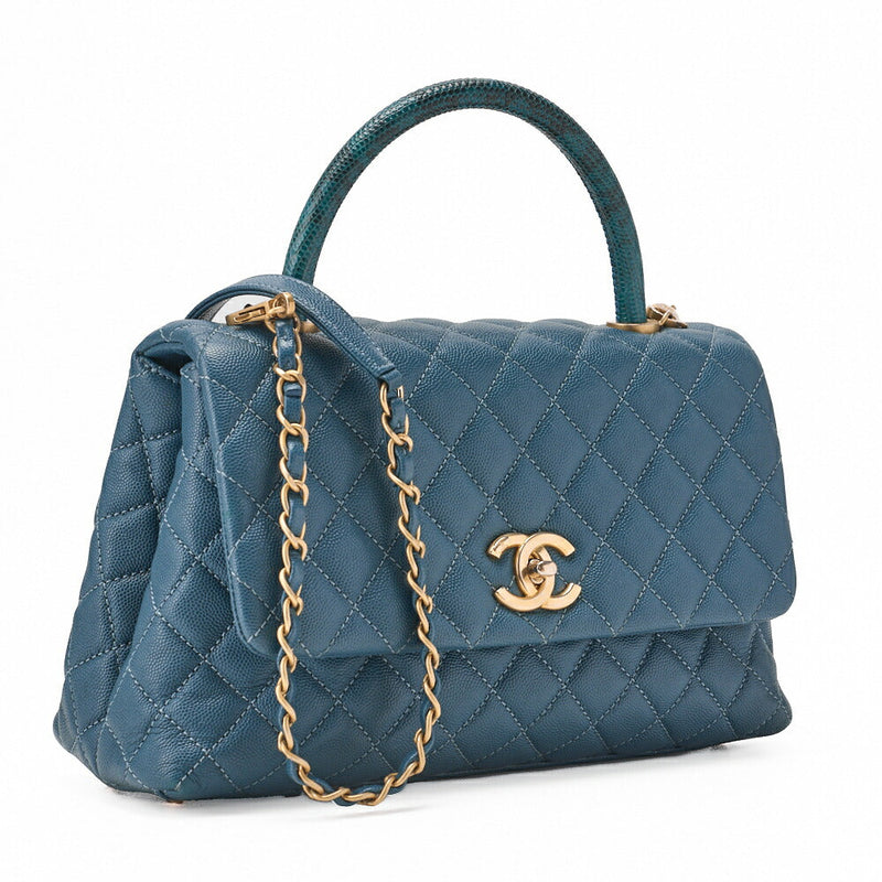 Gebrauchte Schultertasche Matelasse Coco Handle 2WAY Caviar Skin Navy Gold-Tone Hardware Pre-Owned