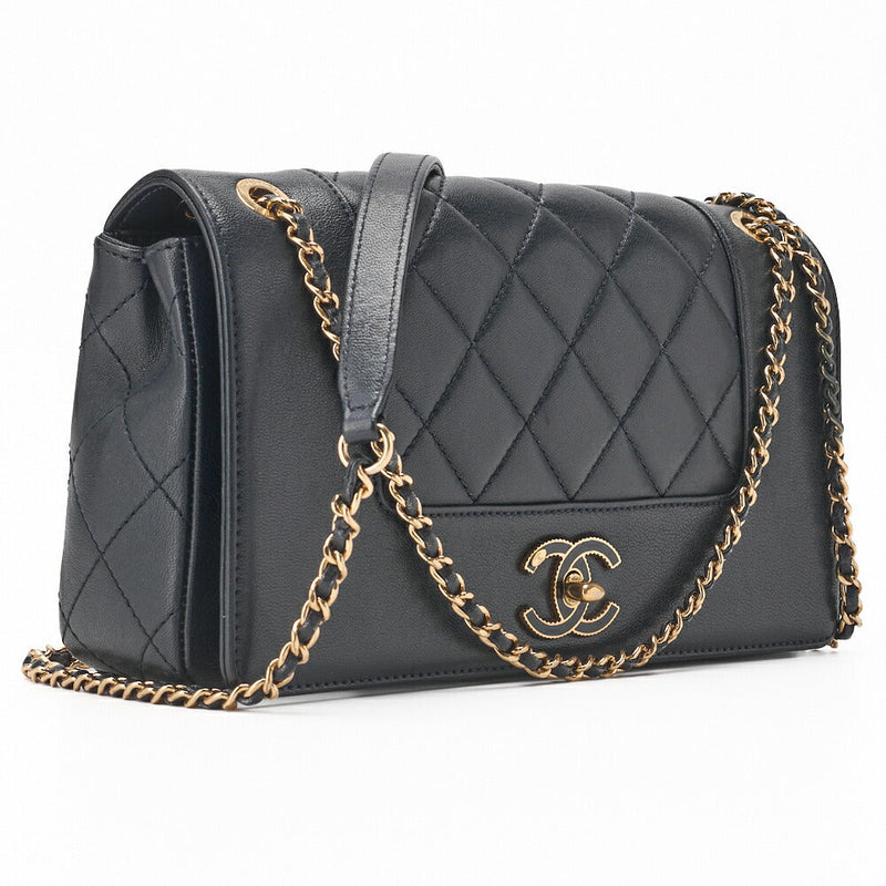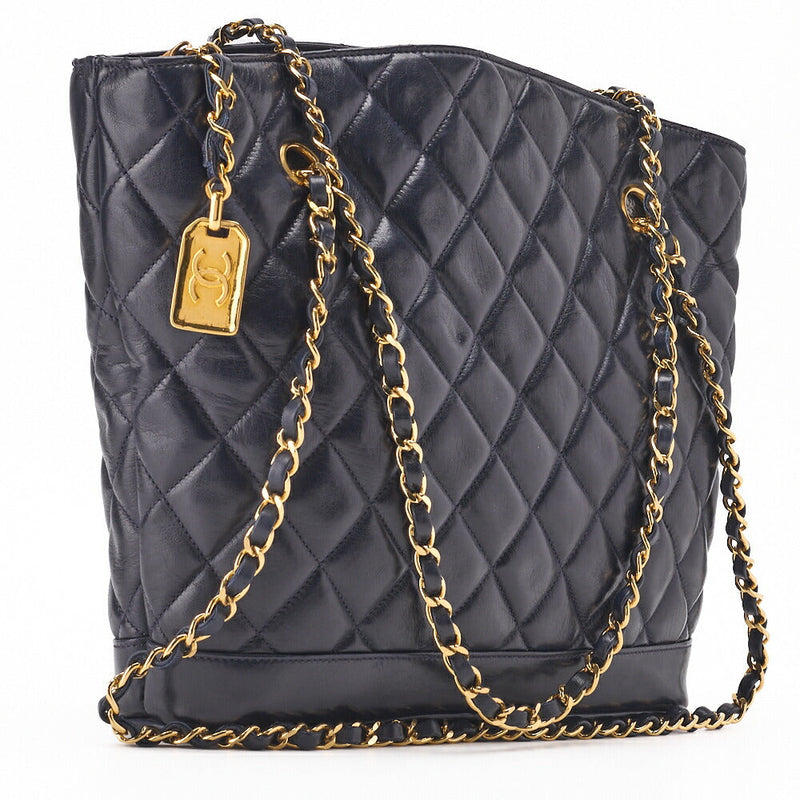 Pre-Owned Schultertasche Matelassé Kalbsleder Navy Goldfarbene Hardware Pre-Owned