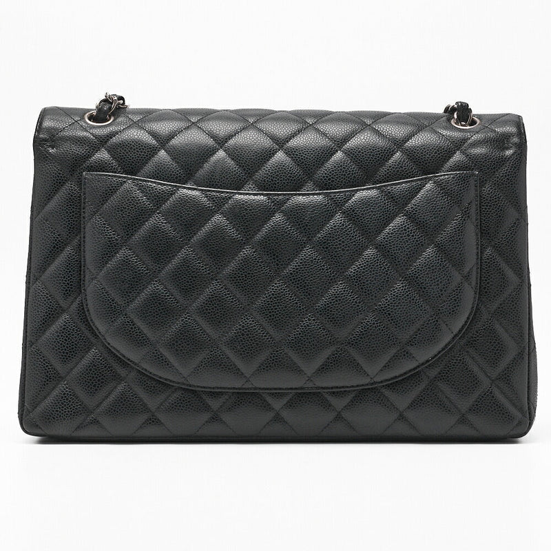 Gebrauchte Umhängetasche, Deca Matelassé, Kaviarhaut, Schwarz, Silberfarbene Metallteile, Gebraucht
