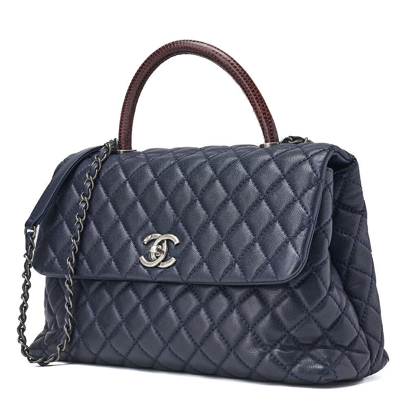 Gebrauchte Schultertasche Matelasse Coco Handle 2WAY Caviar Skin Navy Silberfarbene Hardware Gebraucht