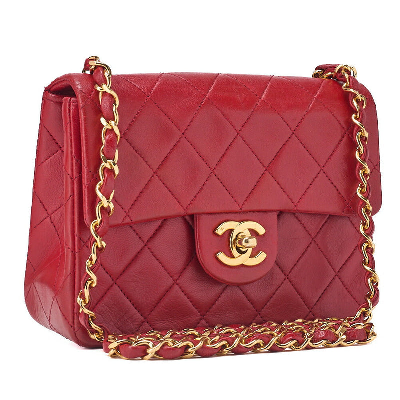Pre-Owned Chain Shoulder Bag Mini Matelassé Lammleder Rot Goldfarbene Hardware Pre-Owned
