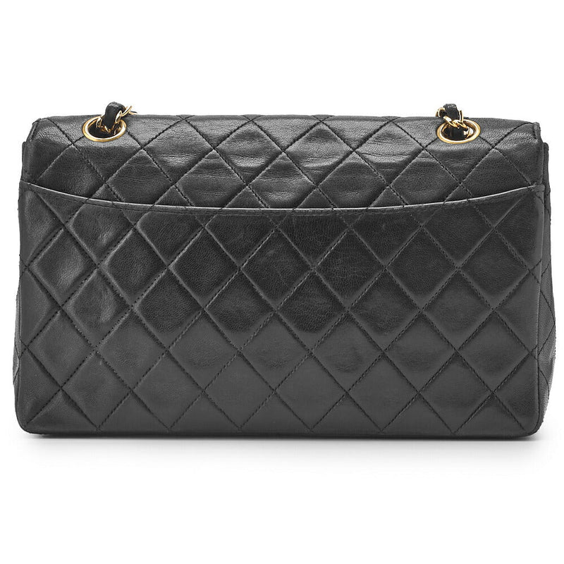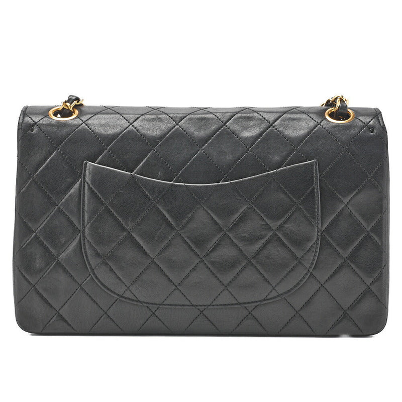 Pre-Owned Schultertasche Matelassé Doppelklappe Lammleder Schwarz Goldfarbene Hardware Pre-Owned