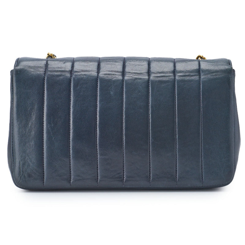 Gebrauchte Umhängetasche, Mademoiselle Drehverschluss, Schulterkette, Lammleder, Marineblau, Goldfarbene Metallteile, Gebraucht