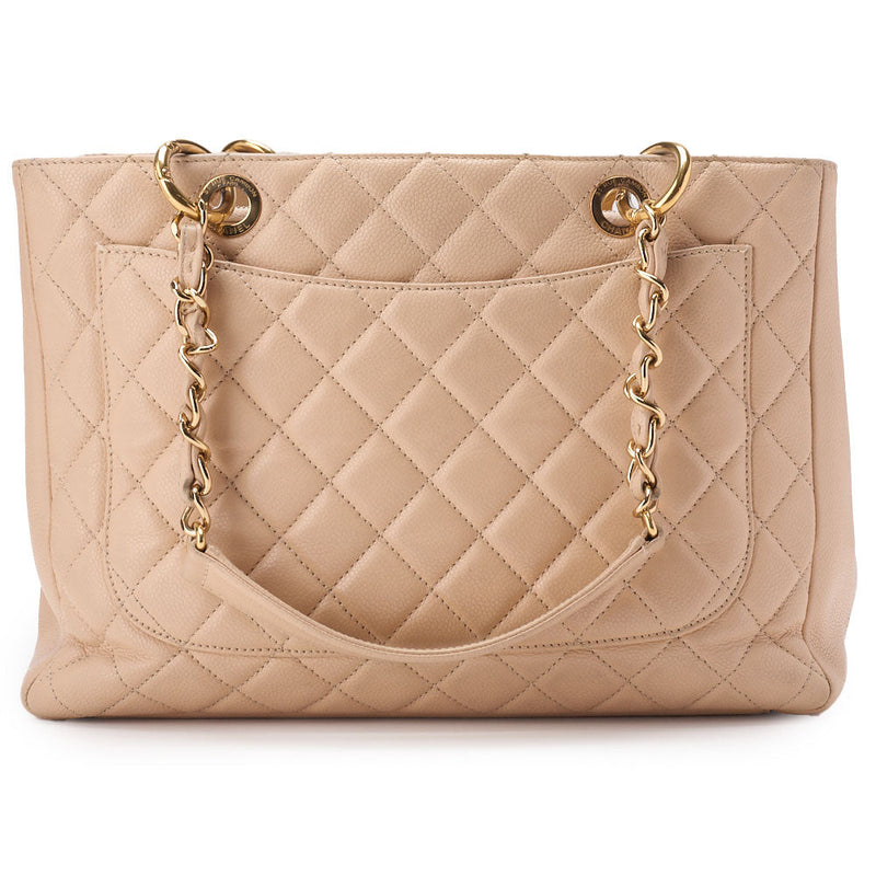 Pre-Owned Schultertasche Matelassé Caviar Skin Beige Silberfarbene Hardware Pre-Owned