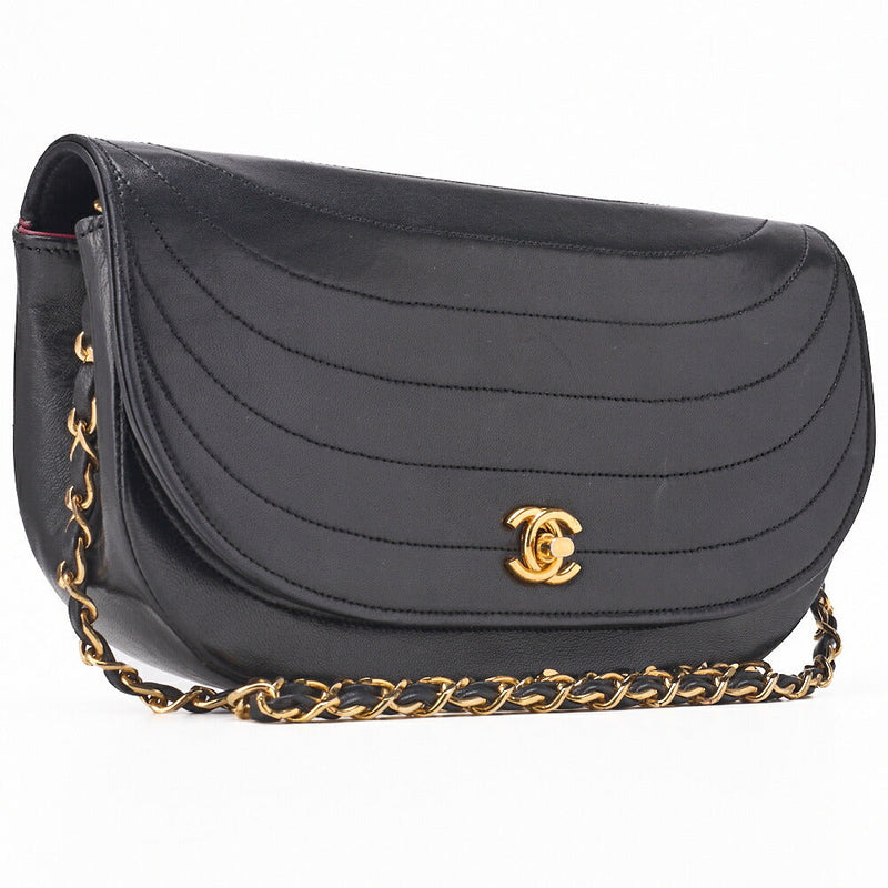 Pre-Owned Schultertasche Border Stitch Half Moon Lammleder Schwarz Gold-Ton Hardware Pre-Owned
