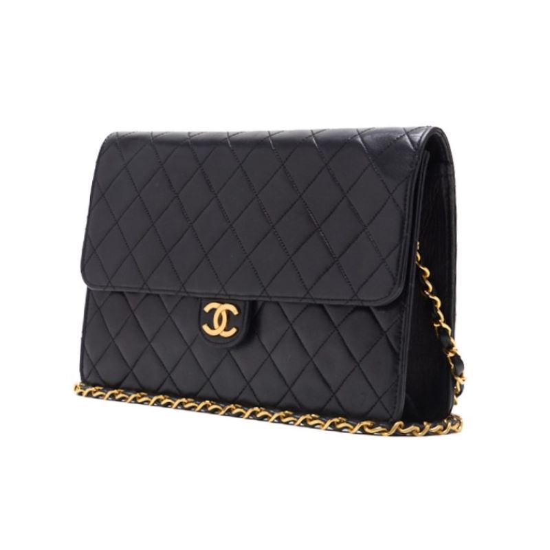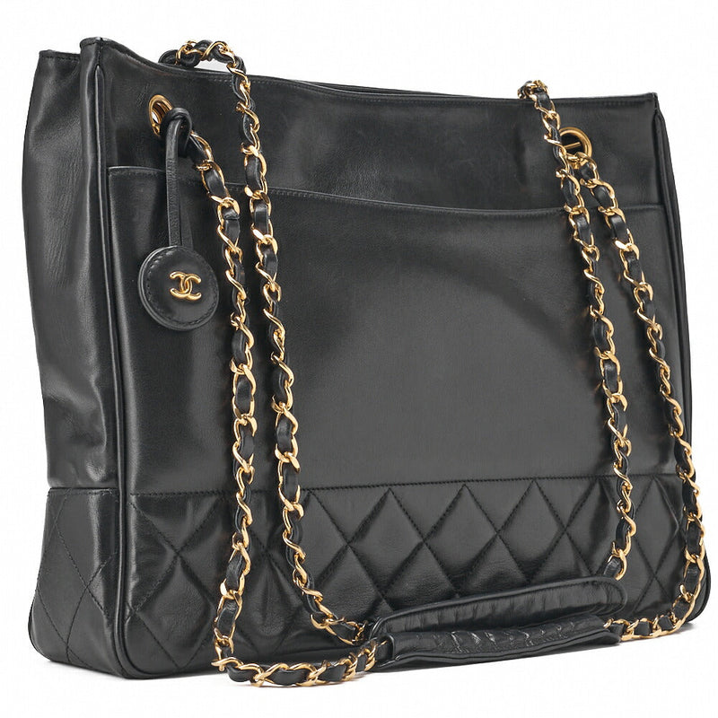 Pre-Owned Chain Shoulder Bag Matelassé Lammleder Schwarz Goldfarbene Hardware Pre-Owned