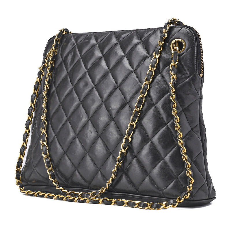 Pre-Owned Schultertasche, Deca Matelassé, Lammleder, Schwarz, Goldfarbene Hardware, Pre-Owned