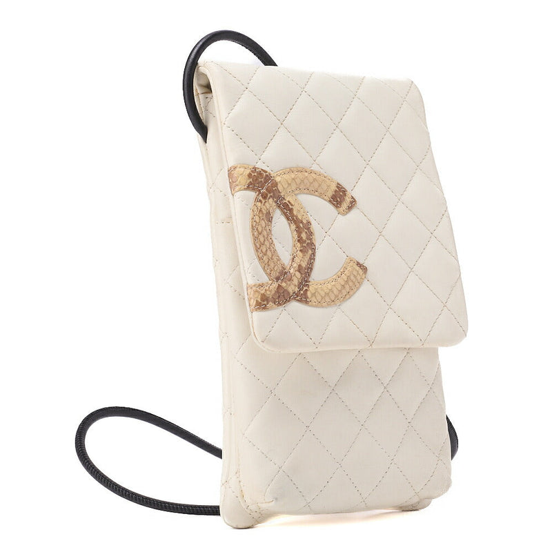 Gebrauchte Umhängetasche, Kettenschulter, Matelassé, Kalbsleder, Weiß, Goldfarbene Hardware, Gebraucht