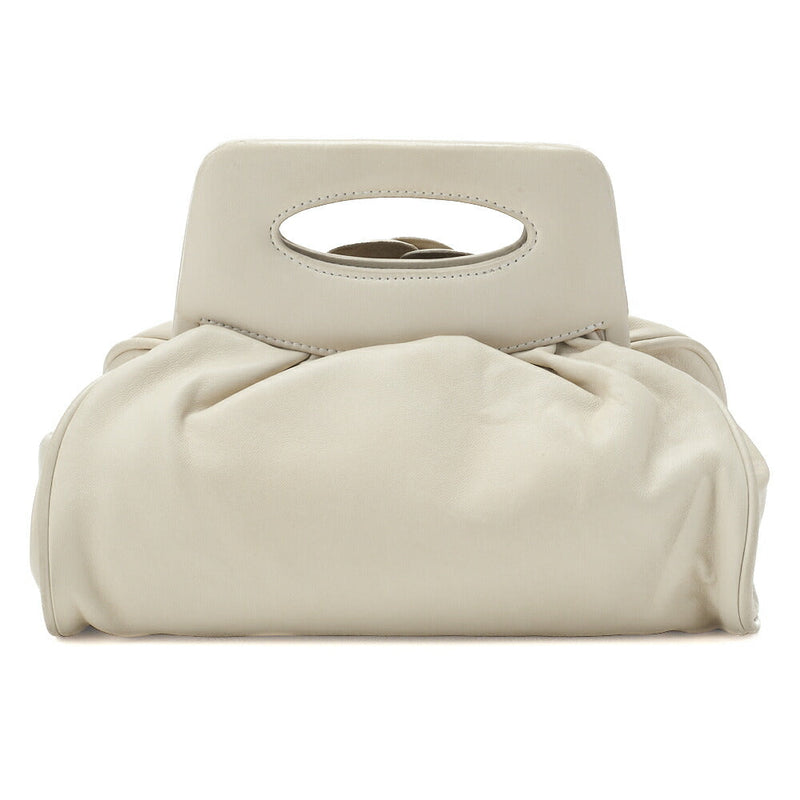 Gebrauchte Camellia Gamaguchi Handtasche Schultertasche Lammleder Weiß Silberfarbene Hardware Gebraucht