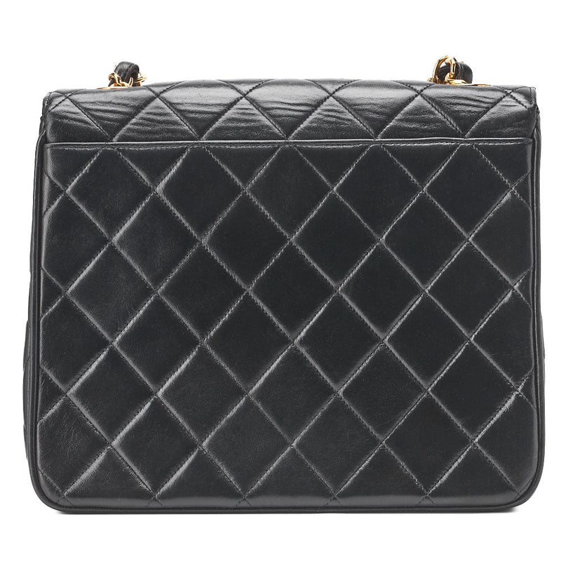 Pre-Owned Kette Schultertasche Matelassé Doppelklappe Lammleder Schwarz Goldfarbene Hardware Pre-Owned