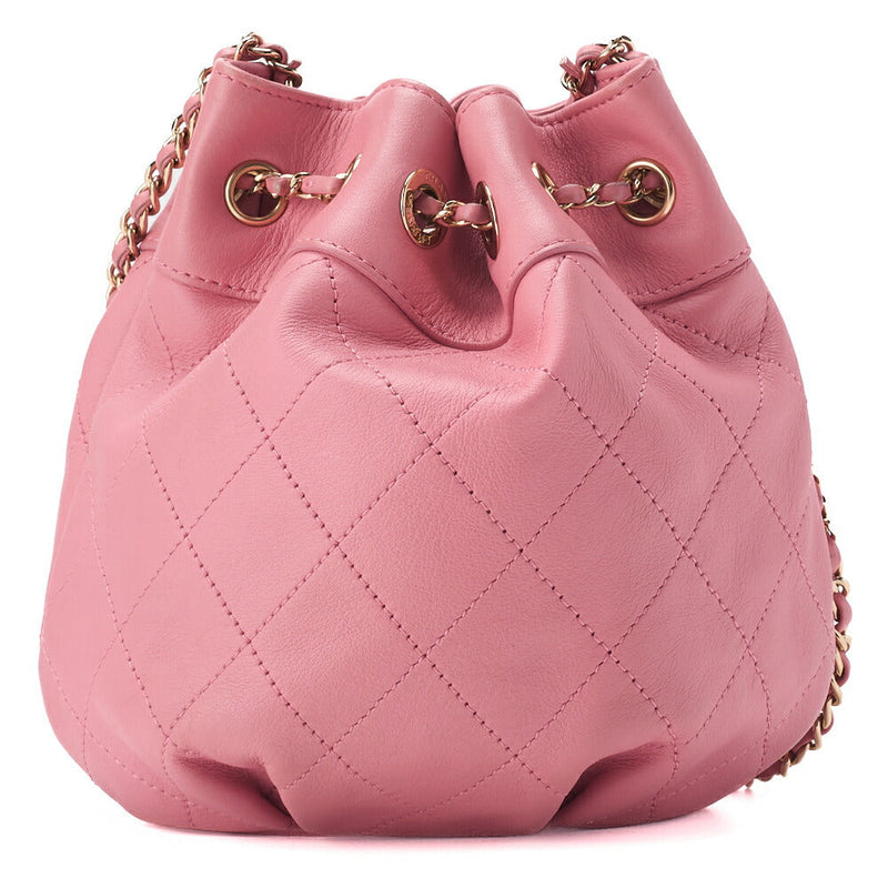Gebrauchte Umhängetasche, Matelassé-Kordelzug, Lammleder, Rosa, Goldfarbene Metallteile, Gebraucht