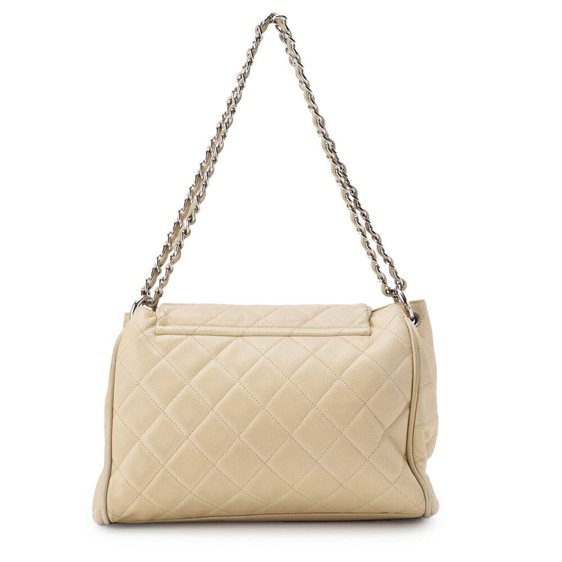 Gebrauchte Umhängetasche, Matelassé, Schulterkette, Kaviarhaut, Elfenbein, silberfarbene Metallteile, gebraucht