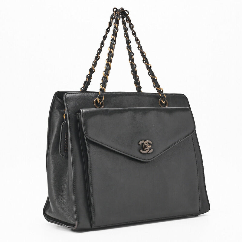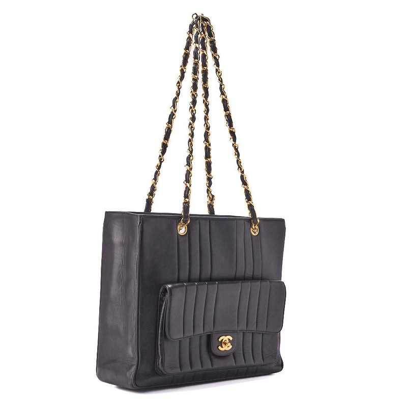 Pre-Owned Schultertasche Mademoiselle Außenklappe Lammleder Schwarz Goldfarbene Hardware Pre-Owned