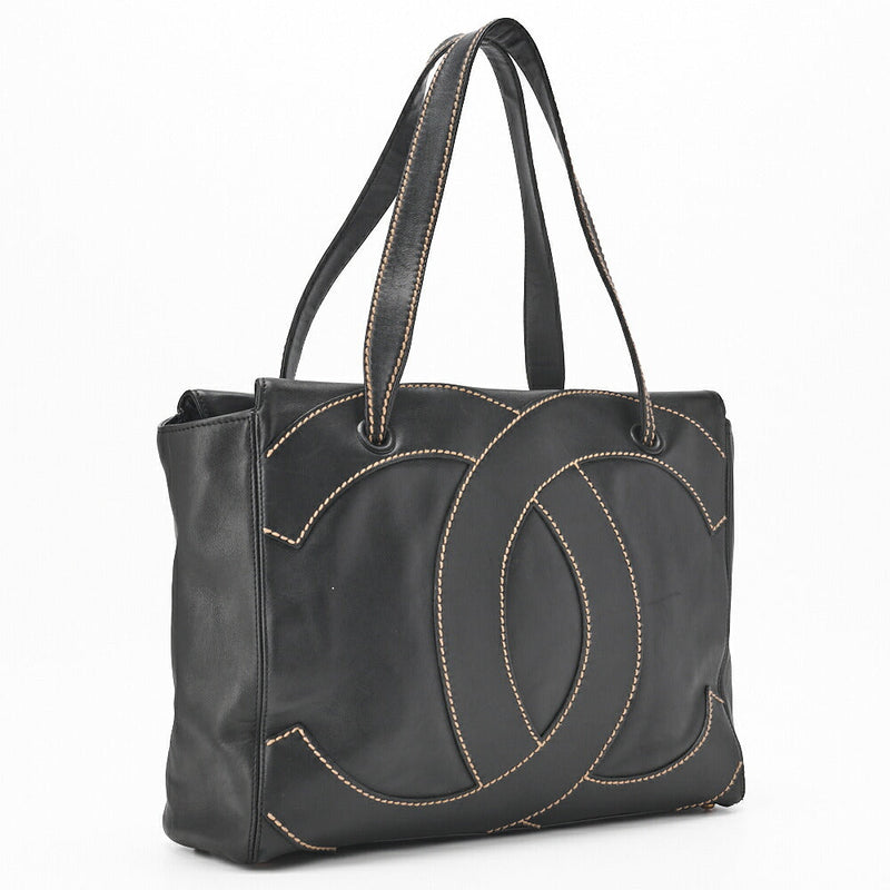 Gebrauchte Tragetasche Wild Stitch Coco Mark Kalbsleder Schwarz Goldfarbene Hardware Gebraucht