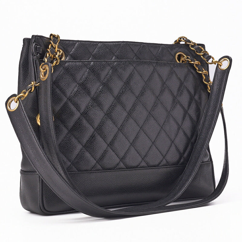 Pre-Owned Schultertasche Matelassé Kaviar Haut Schwarz Goldfarbene Hardware Pre-Owned