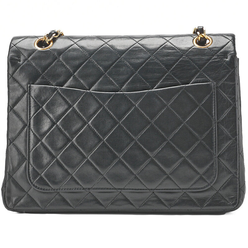 Pre-Owned Schultertasche, Matelassé Doppelklappe, Lammleder, Schwarz, Goldfarbene Hardware, Pre-Owned