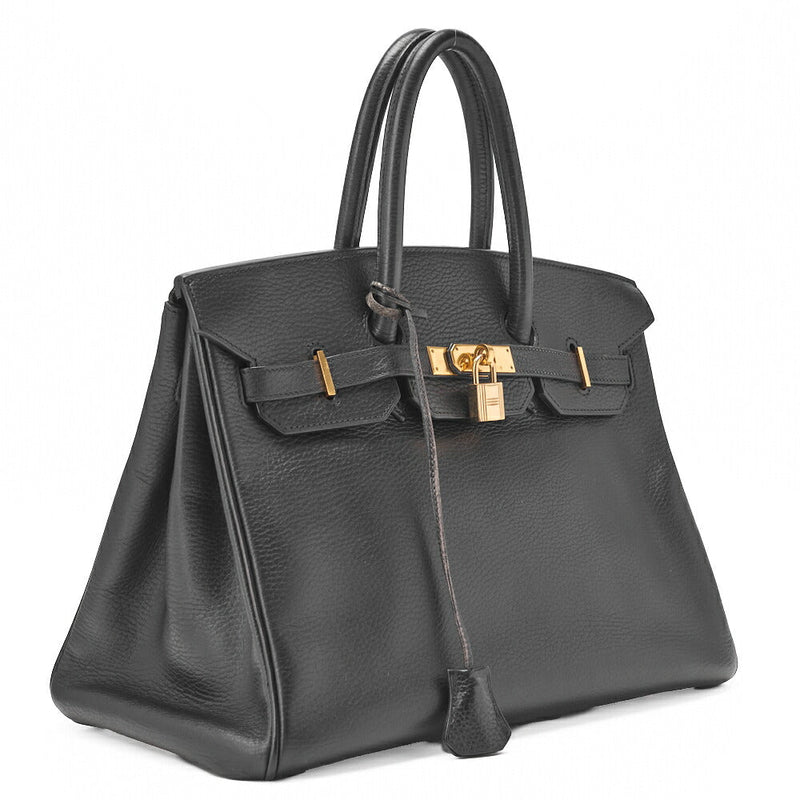 Gebrauchte Birkin 35 Handtasche Ardennes Leder Schwarz Goldfarbene Hardware Gebraucht