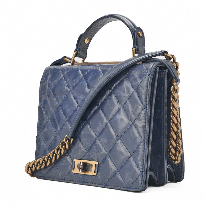 Pre-Owned Umhängetasche Matelasse 2WAY Vintage Calf Navy Gold-Tone Hardware Pre-Owned