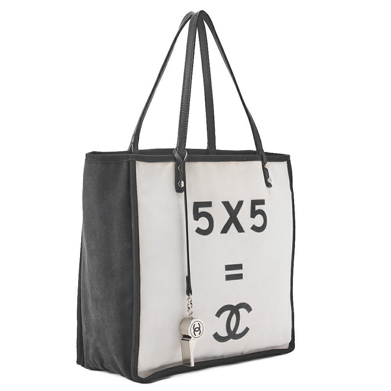 Pre-Owned Tote Bag Coco Mark Canvas with Whistle Charm White x Black Silver-Tone Hardware, Pre-Owned