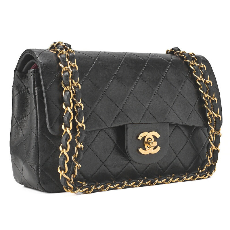 Pre-Owned Chain Shoulder Bag Matelassé Double Flap 23cm Lambskin Black Gold-Tone Hardware, Pre-Owned