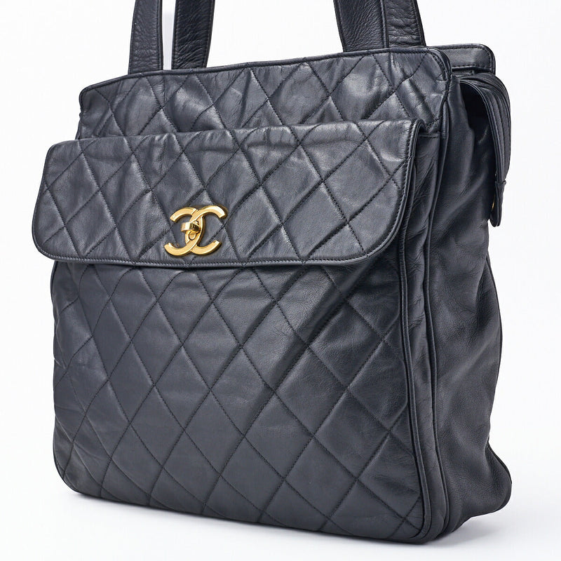 Pre-Owned Schultertasche Matelassé Außenklappe Lammleder Navy Goldfarbene Hardware Pre-Owned