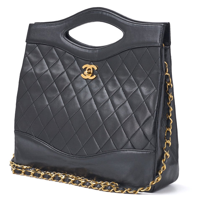 Pre-Owned Tote Bag Matelasse 2WAY Chain Shoulder Lammleder Schwarz Goldfarbene Hardware Pre-Owned