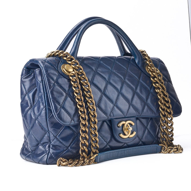 Pre-Owned Schultertasche Matelassé 2WAY Vintage Calf Blau Goldfarbene Hardware Pre-Owned