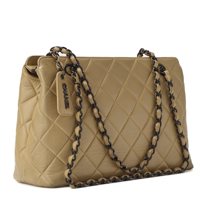 Pre-Owned Schultertasche Matelassé Logo Charm Doppelkette Lammleder Beige Goldfarbene Hardware Pre-Owned