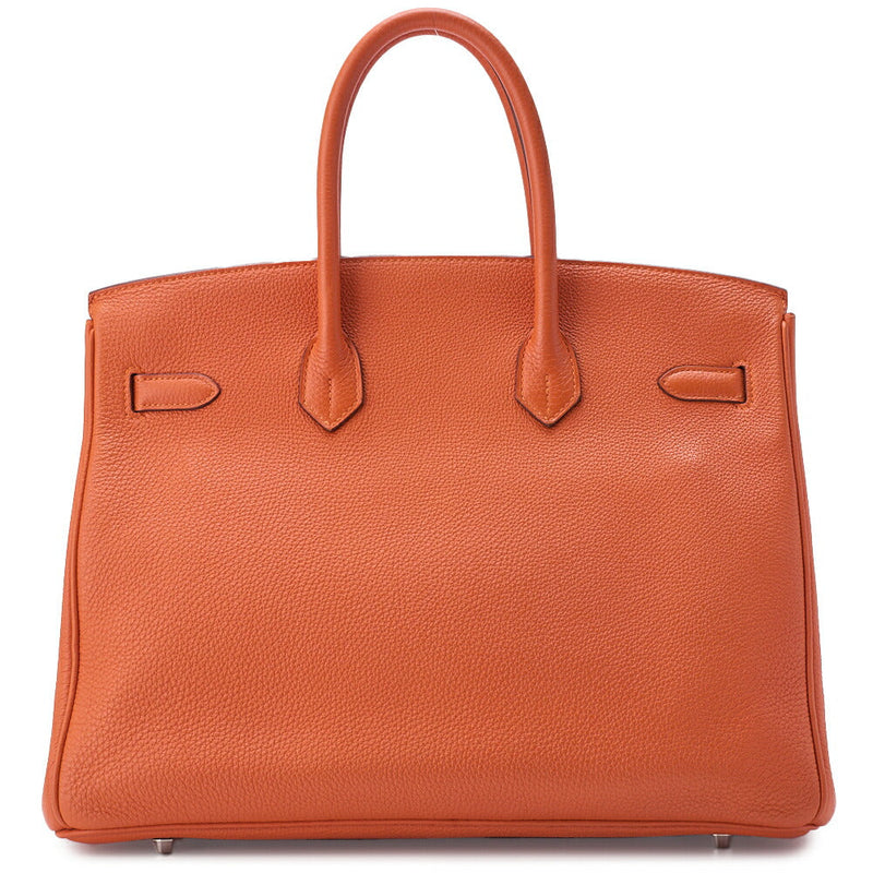 Gebrauchte Birkin 35 Handtasche Togo Orange Silberfarbene Hardware Gebraucht