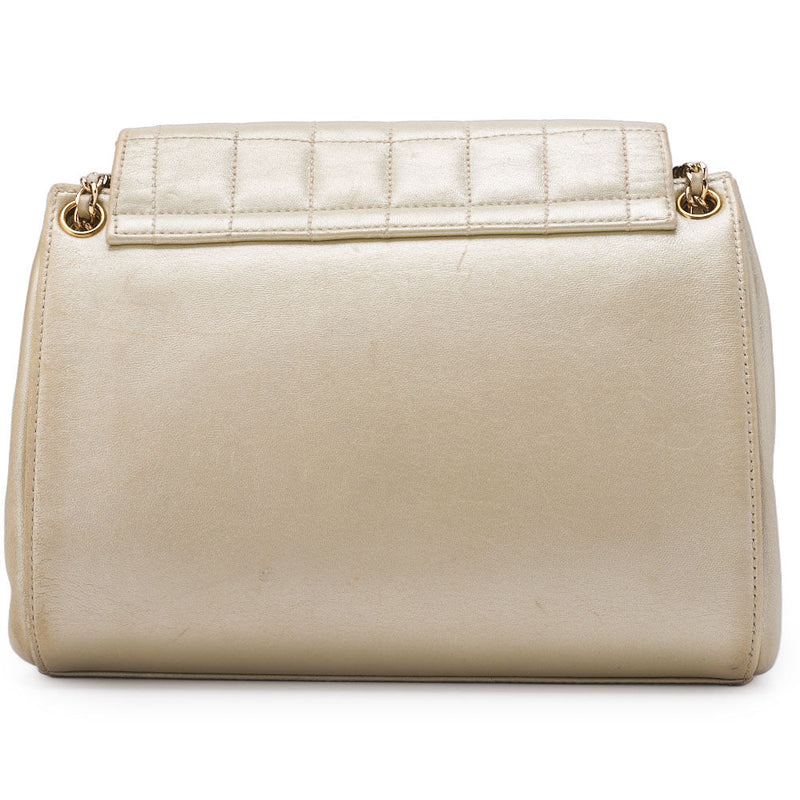 Gebrauchte Umhängetasche, Schokoladentafel, 2,55-Zoll-Schloss, Lammleder, Gold, goldfarbene Metallteile, gebraucht