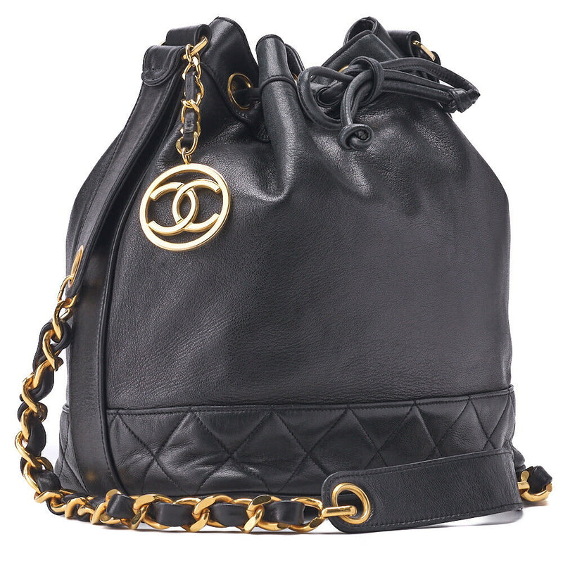 Pre-Owned Schultertasche Coco Kordelzug Typ Lammleder Schwarz Gold-Ton Hardware Pre-Owned