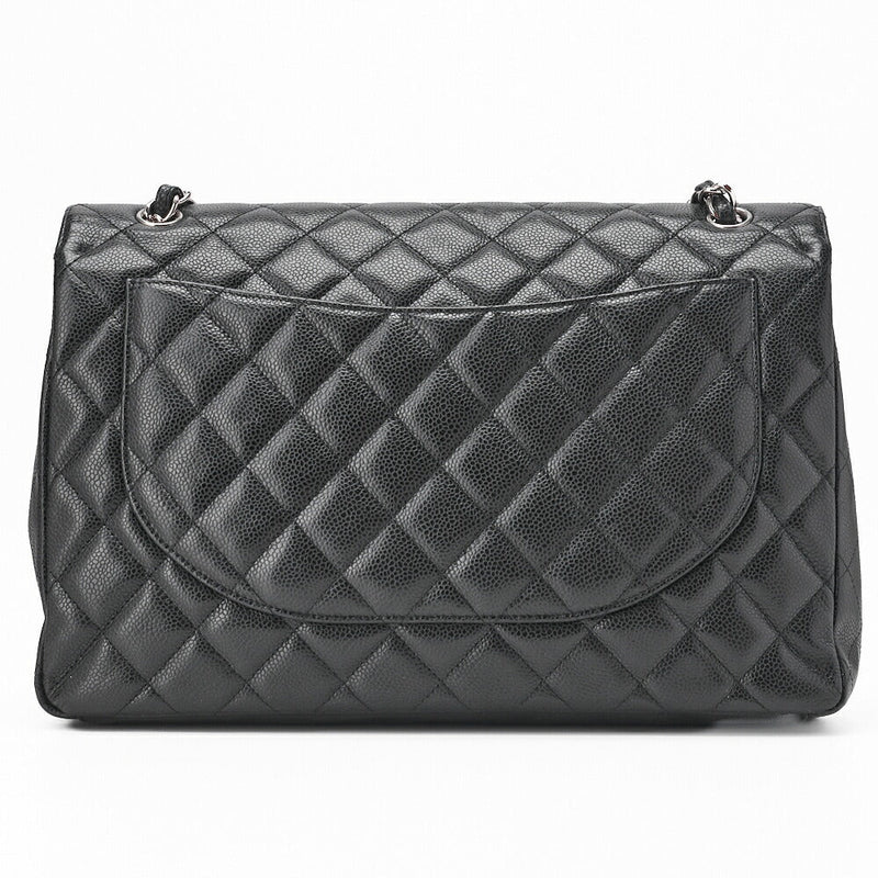 Gebrauchte Umhängetasche, Deca Matelassé, Kaviarhaut, Schwarz, Silberfarbene Metallteile, Gebraucht