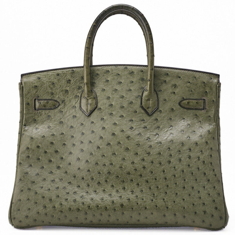 Gebrauchte Birkin 35 Handtasche Ostrich Riken Lichen Gold-Tone Hardware Gebraucht