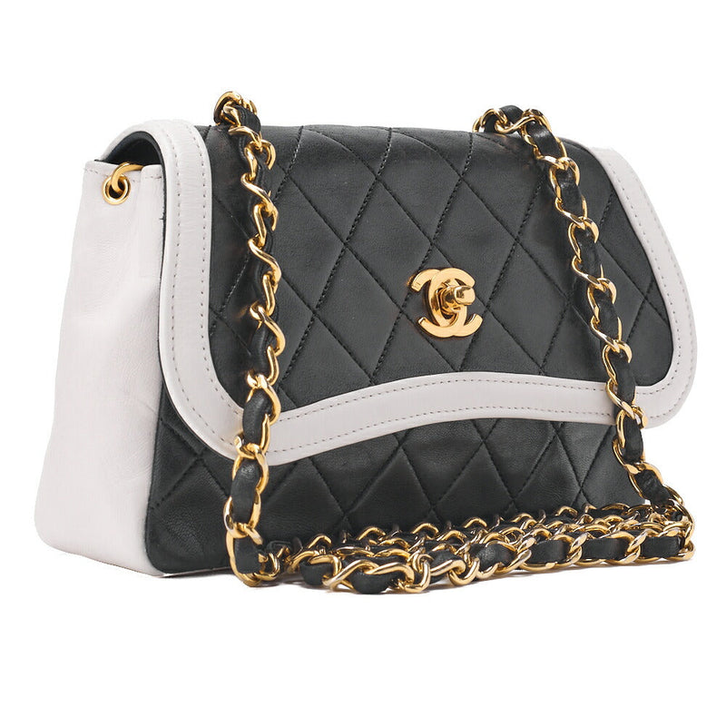 Pre-Owned Mini Schultertasche Matelassé Bicolor Lammleder Schwarz Goldfarbene Hardware Pre-Owned