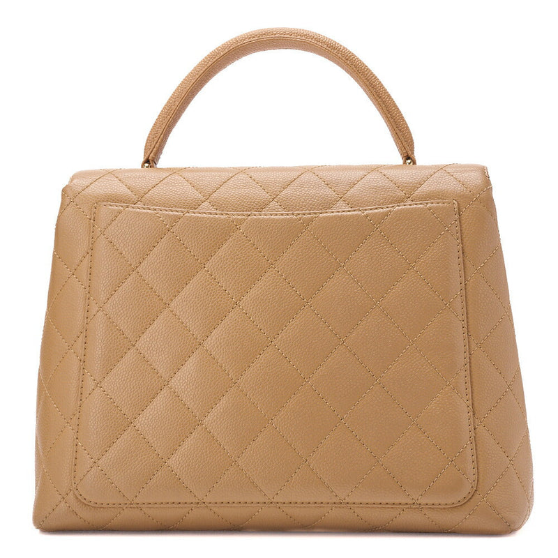 Gebrauchte Umhängetasche, Matelassé-Drehverschluss, Kaviarhaut, Beige, goldfarbene Metallteile, gebraucht