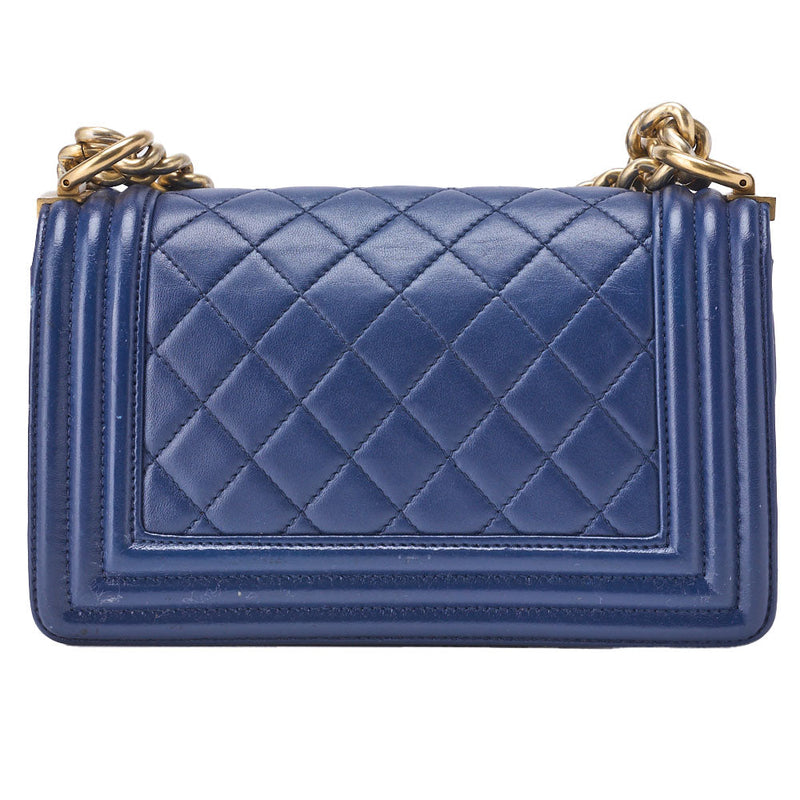 Pre-Owned Boy Matelassé Chain Schultertasche Lammleder Blau Goldfarbene Hardware Pre-Owned