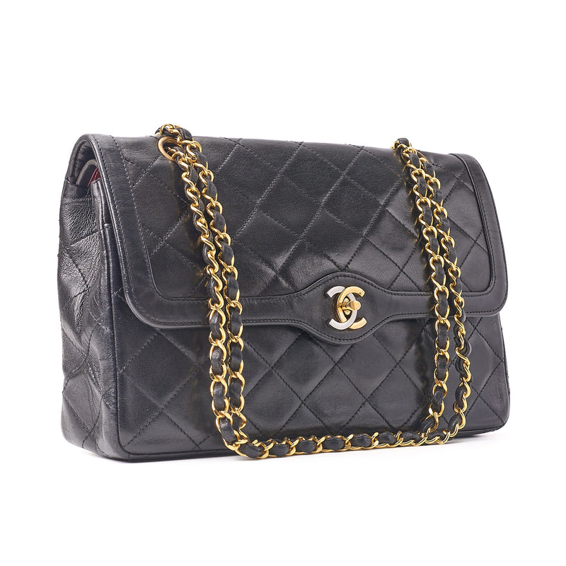 Pre-Owned Schultertasche Matelassé Lammleder Schwarz Goldfarbene Hardware Pre-Owned