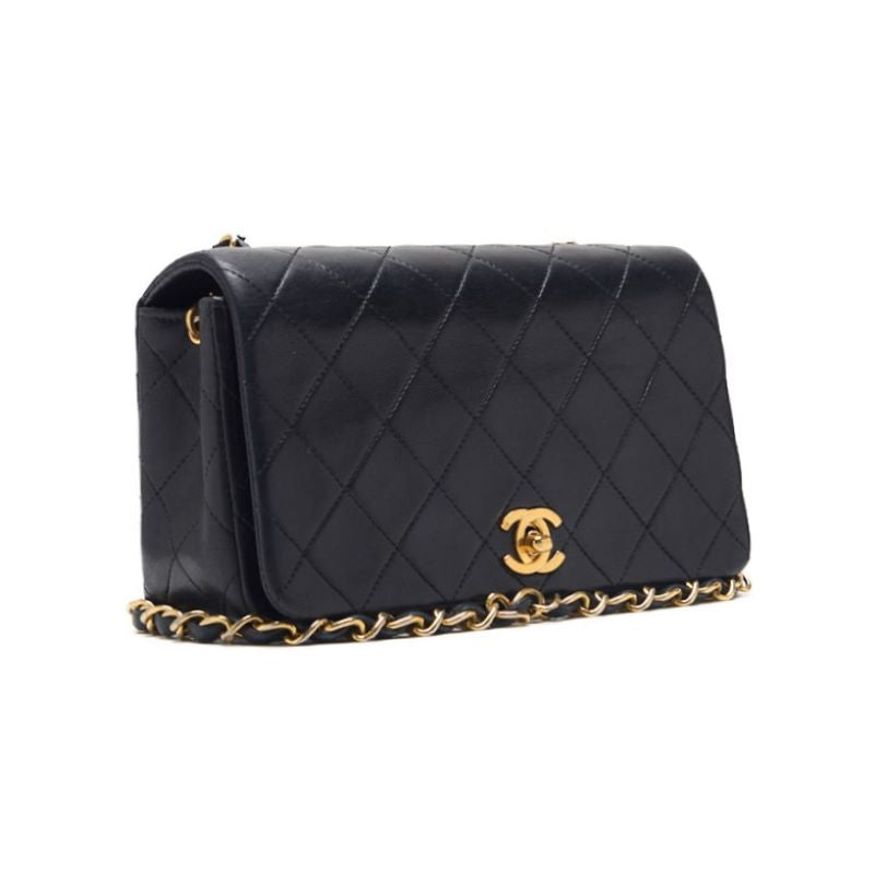 Gebrauchte Umhängetasche Matelassé Full Flap Drehverschluss Kette Schulter Lammleder Schwarz Goldfarbene Hardware Gebraucht