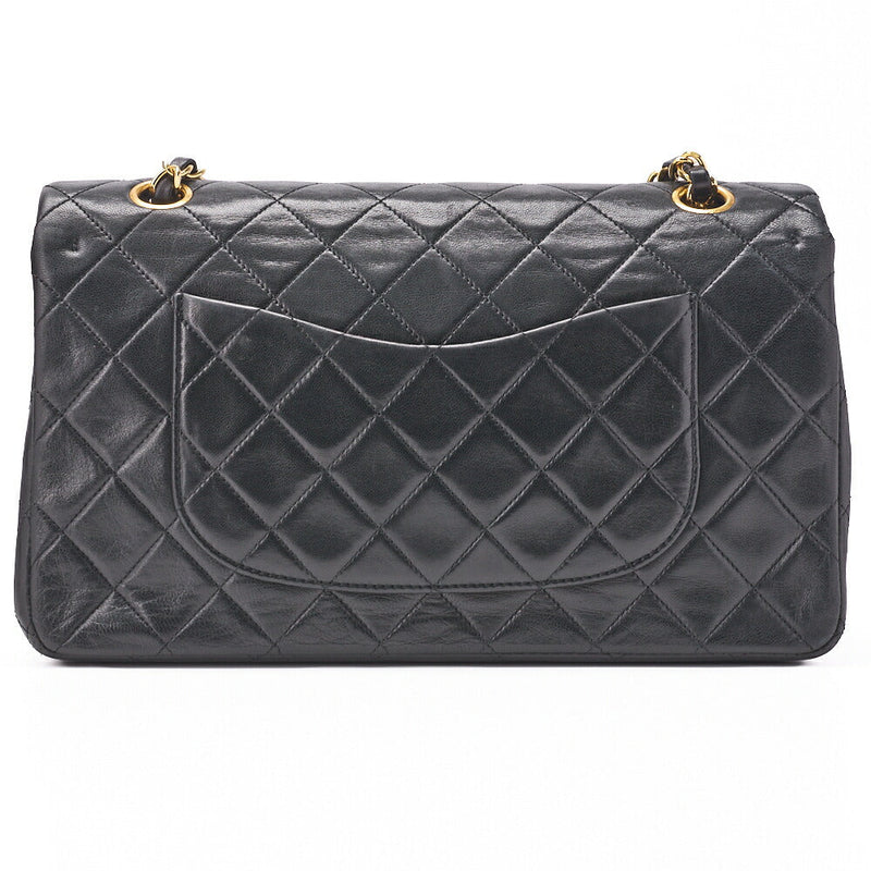 Pre-Owned Schultertasche Matelassé Doppelklappe Lammleder Schwarz Goldfarbene Hardware Pre-Owned