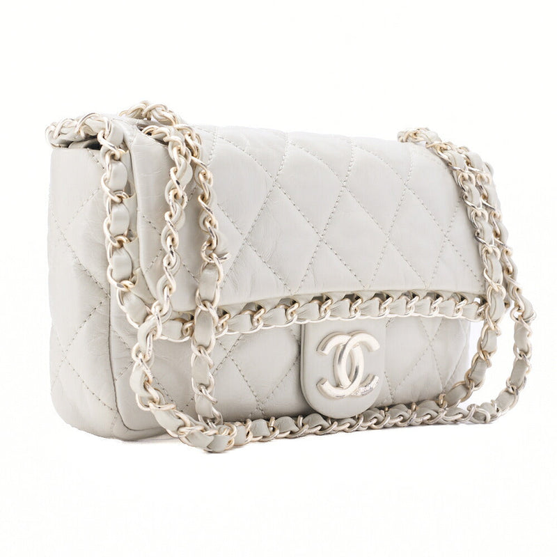 Pre-Owned Umhängetasche Matelassé Kette Schulter Vintage Kalbsleder Weiß Silberfarbene Hardware Pre-Owned
