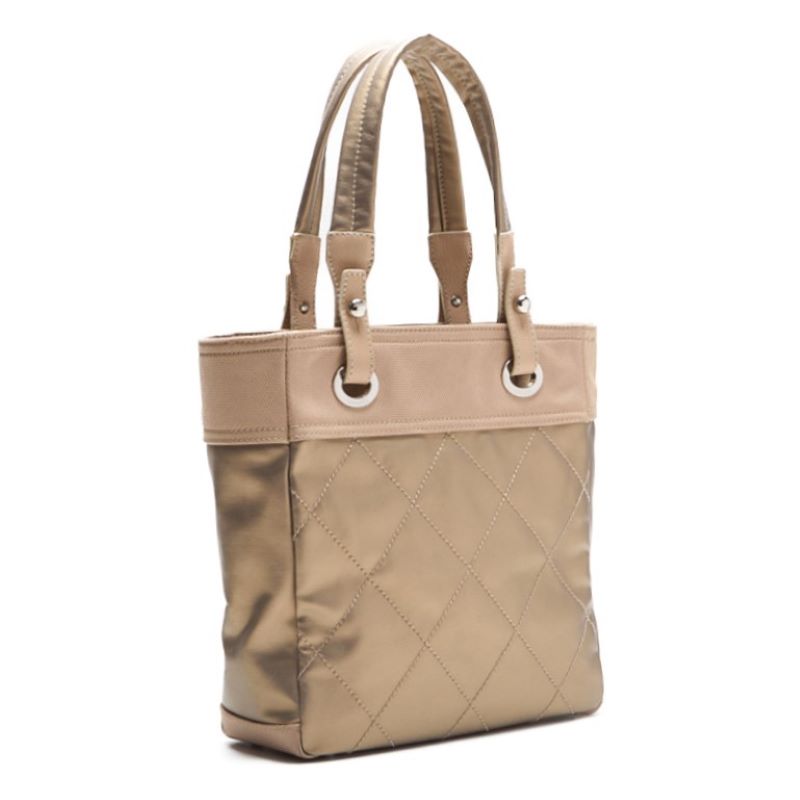 Pre-Owned Schultertasche Matelassé Beschichtetes Canvas Gold Silberfarbene Metallteile Pre-Owned