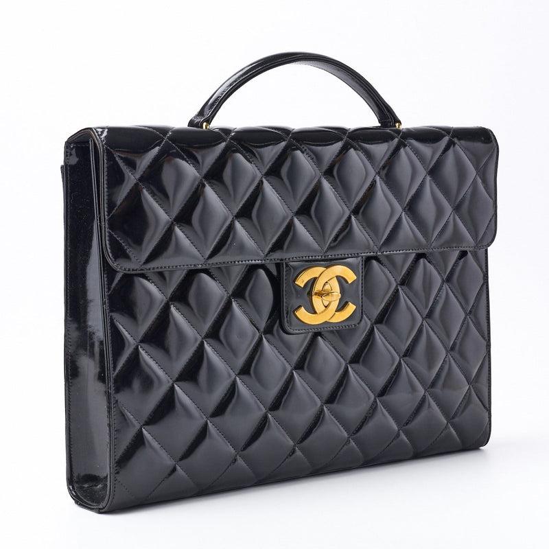 Gebrauchte Businesstasche, Matelassé, Emaille, Schwarz, goldfarbene Metallteile, gebraucht