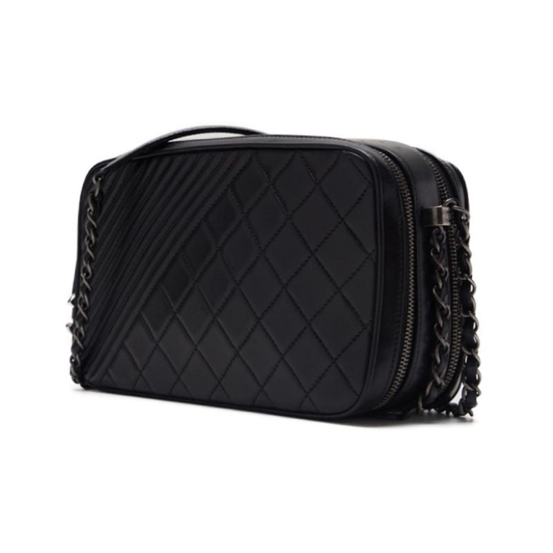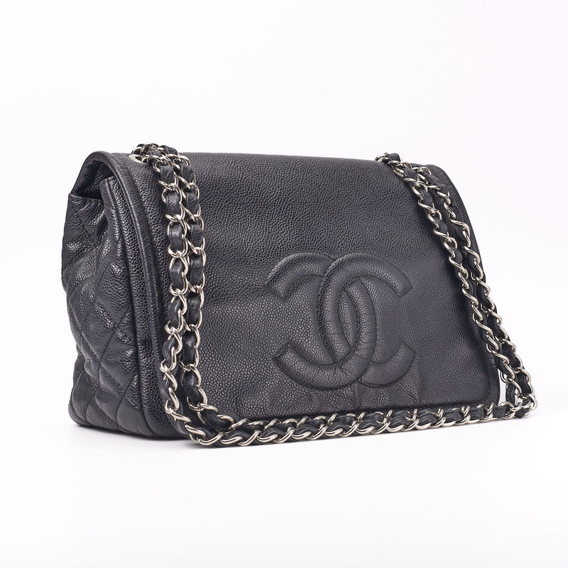 Gebrauchte Tragetasche Matelassé Coco Mark Kette Schulter Weiche Kaviarhaut Schwarz Silberfarbene Hardware Gebraucht